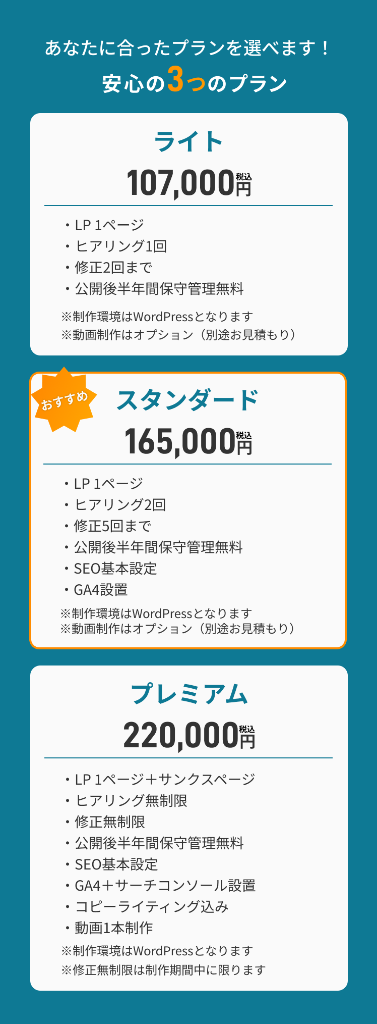 公開後、半年間の保守管理無料。一緒に成果を出していきましょう。
